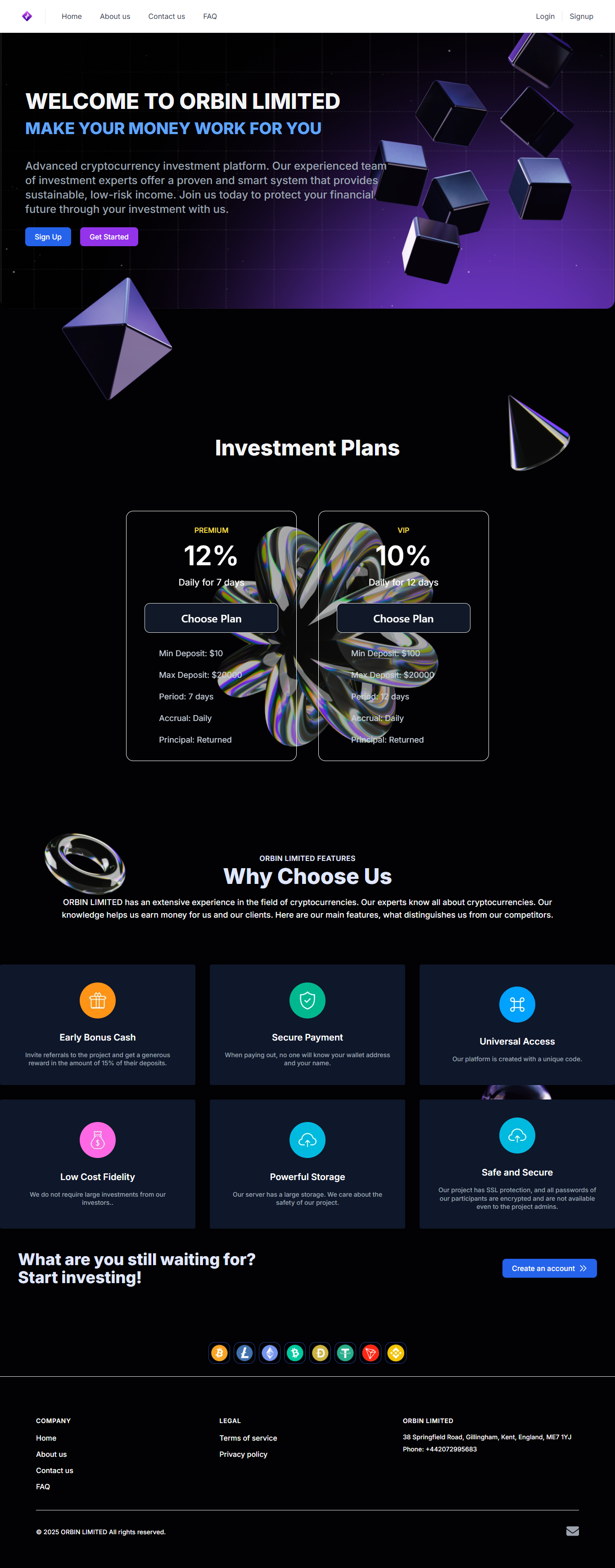 MAKE YOUR MONEY WORK FOR YOU Advanced cryptocurrency investment platform. Our experienced team of investment experts offer a proven and smart system that provides sustainable, low-risk income. Join us today to protect your financial future through your investment with us.Comments: