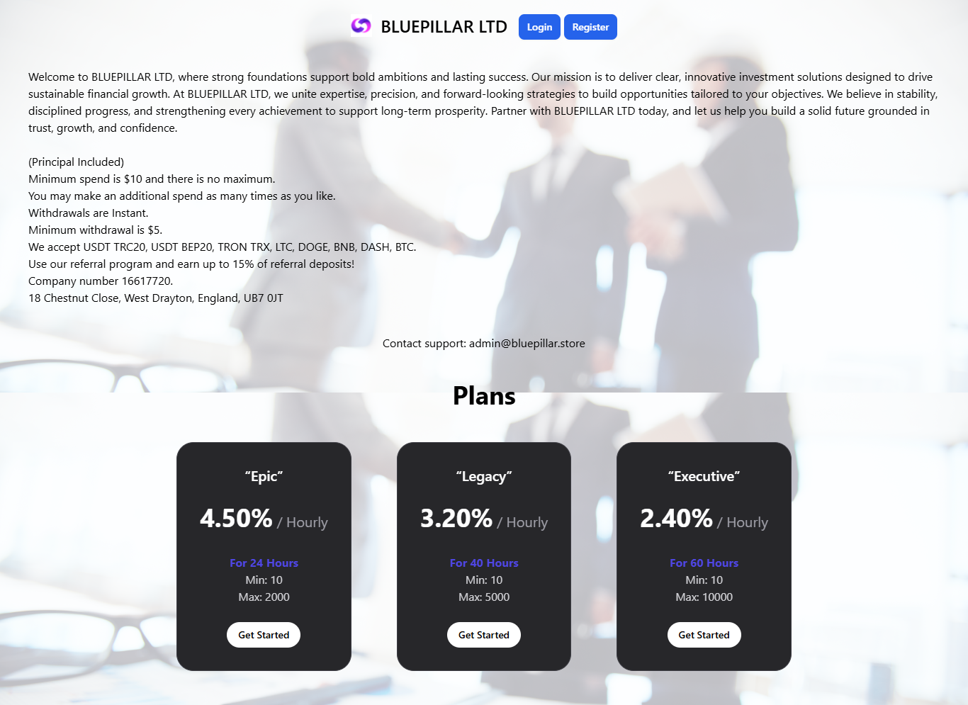 Welcome to BLUEPILLAR LTD, where strong foundations support bold ambitions and lasting success. Our mission is to deliver clear, innovative investment solutions designed to drive sustainable financial growth. At BLUEPILLAR LTD, we unite expertise, precision, and forward-looking strategies to build opportunities tailored to your objectives. We believe in stability, disciplined progress, and strengthening every achievement to support long-term prosperity. Partner with BLUEPILLAR LTD today, and let us help you build a solid future grounded in trust, growth, and confidence.Comments: