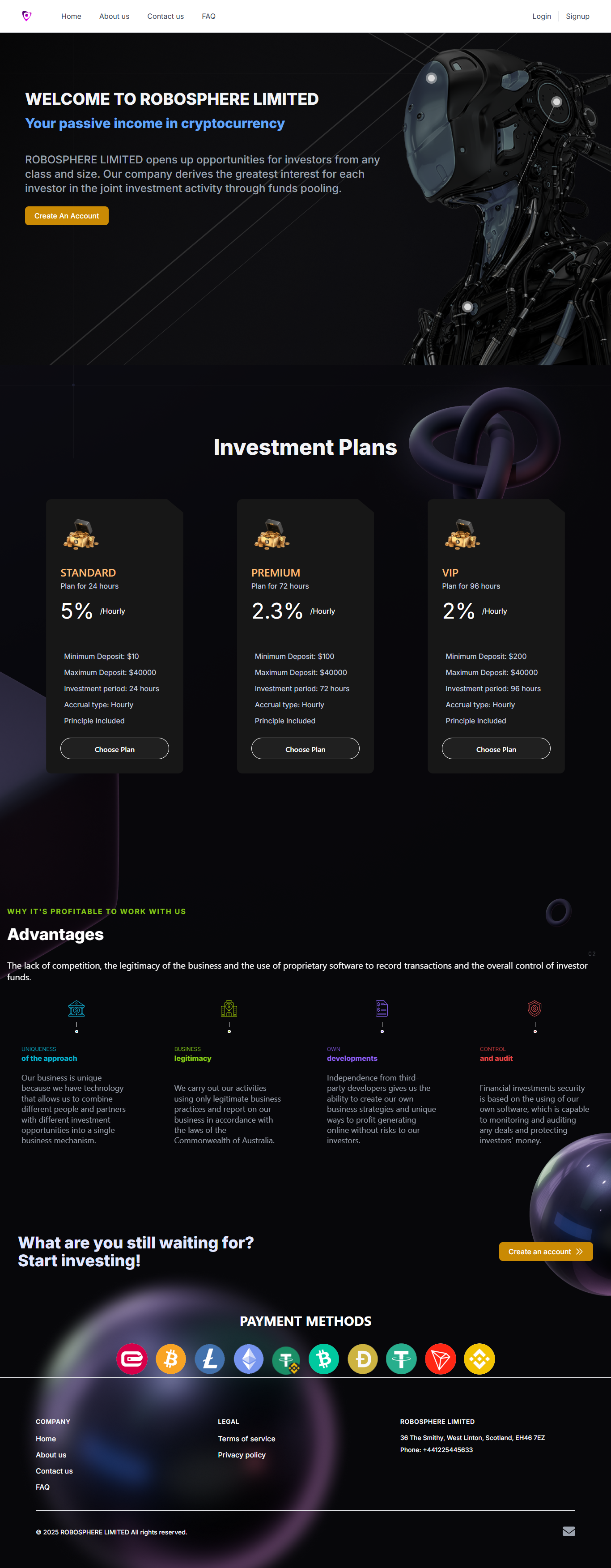 ROBOSPHERE LIMITED opens up opportunities for investors from any class and size. Our company derives the greatest interest for each investor in the joint investment activity through funds pooling.Comments:
