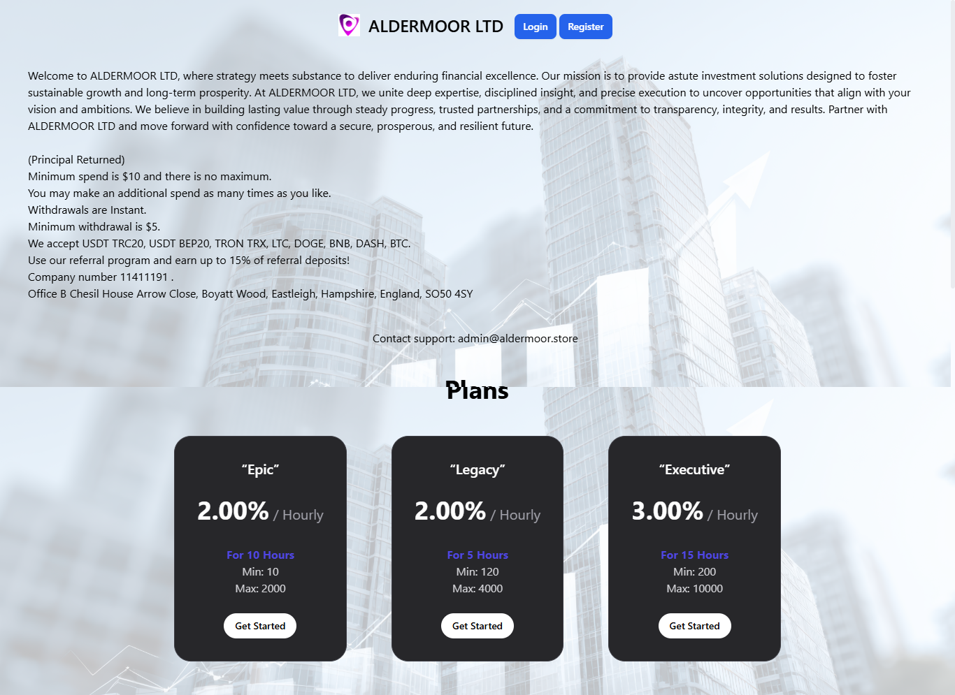 Welcome to ALDERMOOR LTD, where strategy meets substance to deliver enduring financial excellence. Our mission is to provide astute investment solutions designed to foster sustainable growth and long-term prosperity. At ALDERMOOR LTD, we unite deep expertise, disciplined insight, and precise execution to uncover opportunities that align with your vision and ambitions. We believe in building lasting value through steady progress, trusted partnerships, and a commitment to transparency, integrity, and results. Partner with ALDERMOOR LTD and move forward with confidence toward a secure, prosperous, and resilient future.Comments: